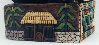 Acercamiento del rostro del dios de la medicina en sacrificio al dios Chak