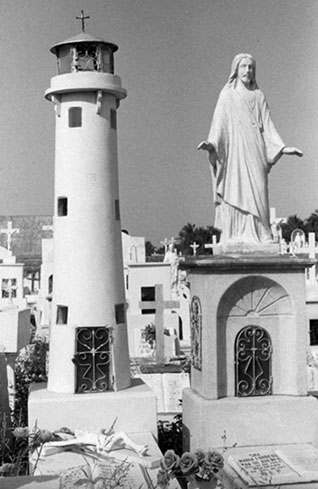 En Progreso no podría faltar el faro del puerto de Progreso, junto a una estatua de Jesucristo que, con sus brazos extendidos semeja otro faro para los visitantes a los muertos.