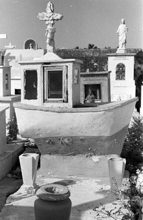 En Progreso encontramos varios mausoleos: que no nos dejan en duda que el fallecido fue pescador