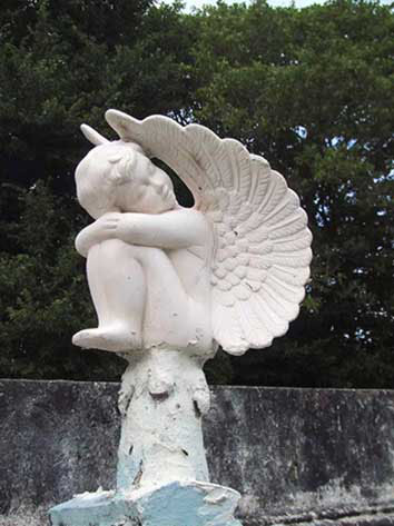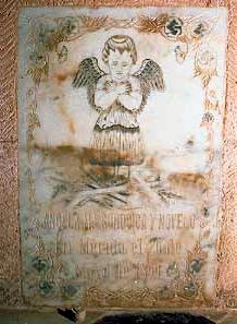 Lápida con angelito, en Peto