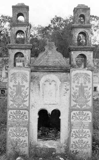 Hay mausoleos que en sí son un arte de caligrafía como este mausoleo que reproduce la iglesia de Sotuta |